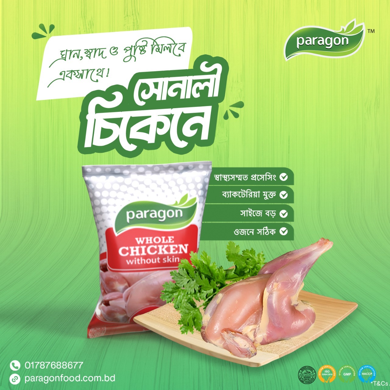 Weight: 500gm(+-30gm.)/1 Pcs. Halal slaughtering and sufficient bleeding. All the chickens are grown at the firm in the proper environment regularly inspected by a veterinarian. Natural – Antibiotic-free – No harmful substances – Safe. Certification: ISO 22000, GMP, HACCP, 100% HALAL.